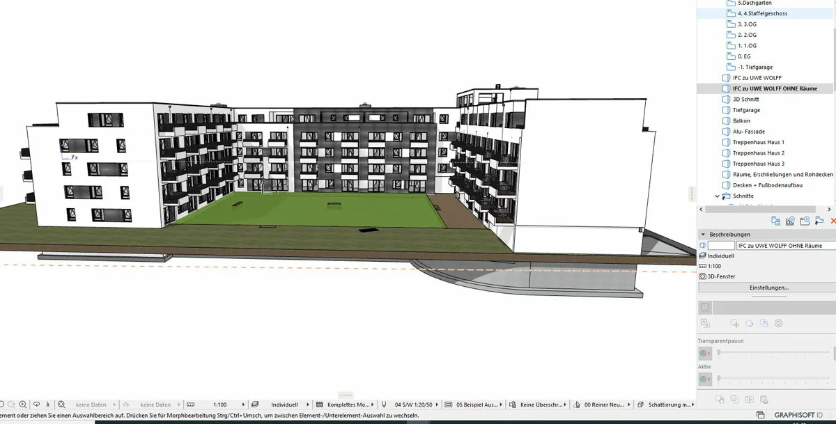 Darüber hinaus wird das 3D-Planungsmodell weiter in der Kalkulationsabteilung zur Mengenermittlung und LV-Erstellung verwendet.